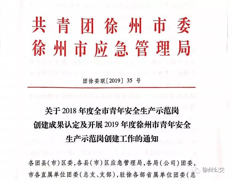 近日,共青團(tuán)徐州市委與徐州市應(yīng)急管理局聯(lián)合發(fā)布了《關(guān)于2018年度全市青年安全生產(chǎn)示范崗創(chuàng)建成果認(rèn)定及開展2019年度青年安全生產(chǎn)示范崗創(chuàng)建工作通知》,兆通公司81路線被認(rèn)定為2018年度徐州市“青年安全生產(chǎn)示范崗”。81路線路由徐州淮海食品城車站開往大許鎮(zhèn),途經(jīng)20多個站點(diǎn),保證了大許及沿途居民的便捷出行。該線路自創(chuàng)建“青年安全生產(chǎn)示范崗”以來,把創(chuàng)建活動作為凝聚車隊(duì)青年、團(tuán)結(jié)青年、帶領(lǐng)青年建功立業(yè)的有效載體,緊密結(jié)合公交行業(yè)特點(diǎn),將“青年安全生產(chǎn)示范崗”創(chuàng)建工作納入車隊(duì)工作中,努力營造濃厚的創(chuàng)建氛圍。