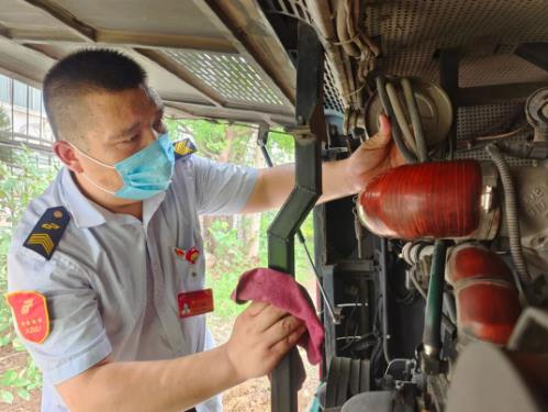 91路線總長(zhǎng)40公里,途經(jīng)工程學(xué)院、行政中心、大龍湖、淮海文博園等主要站點(diǎn),是連接新城區(qū)和市中心交通的主要干線,載客量非常大。近日徐州市的天氣頻頻達(dá)到36℃以上,路面溫度更是接近40℃,但是謝書(shū)明從不叫苦喊累,跑完一圈后,他顧不上喝水,利用一點(diǎn)點(diǎn)的休息時(shí)間,對(duì)車(chē)廂進(jìn)行消殺、打掃。謝書(shū)明擦了臉上的汗水說(shuō):“在這個(gè)特殊時(shí)期,我必須保證車(chē)廂一趟一消殺,車(chē)內(nèi)衛(wèi)生整潔,給乘客提供一個(gè)舒適的乘車(chē)環(huán)境?!?/span>