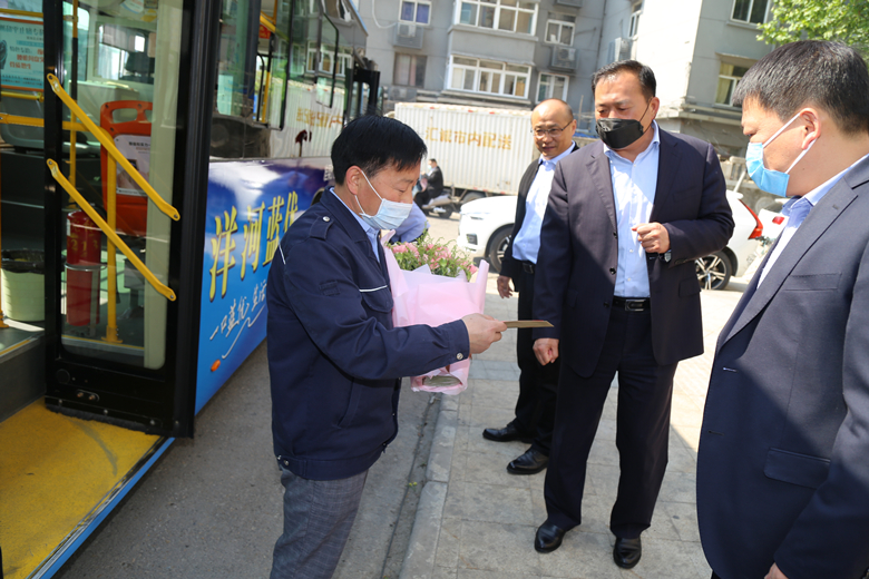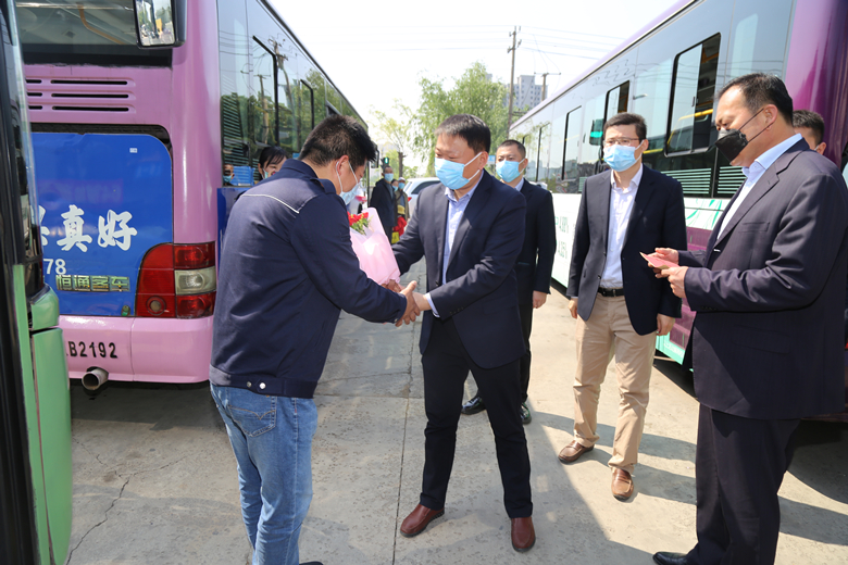 當(dāng)天上午,公交集團(tuán)黨委書記、董事長杜紅軍,總經(jīng)理馮陸陸,常務(wù)副總經(jīng)理蔣成彪,副總經(jīng)理丁玉華帶隊(duì)分為四組,到14路、64路、10路等終點(diǎn)站、車場等處開展勞模標(biāo)兵走訪慰問活動(dòng),為韓杰、劉艷軍、楊鵬鵬、曹瑞國、劉委等11名市勞模,省、市五一勞動(dòng)獎(jiǎng)?wù)潞推髽I(yè)勞模送去了鮮花和節(jié)日慰問金。