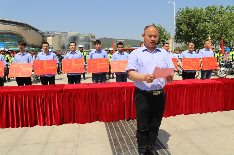 為深入推進(jìn)交通秩序綜合整治行動(dòng),提升駕駛?cè)?/span>文明行車素質(zhì),營(yíng)造安全暢通、和諧有序的道路交通環(huán)境,市創(chuàng)建辦于5月12日在礦大科技廣場(chǎng)舉行了“文明行車我承諾,文明行為你監(jiān)督”主題宣傳教育活動(dòng)啟動(dòng)儀式,公司常務(wù)副總經(jīng)理蔣成彪帶領(lǐng)公司職工到場(chǎng)參與了活動(dòng)。