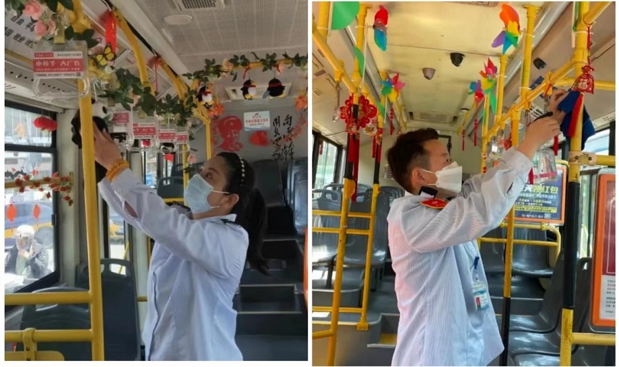 2022年5月20日是第4屆全國(guó)公交駕駛員關(guān)愛日,在節(jié)日來臨之際,徐州公交新巴士公司駕駛員精心裝扮主題車廂,為給乘客營(yíng)造溫馨、舒適的乘車環(huán)境。