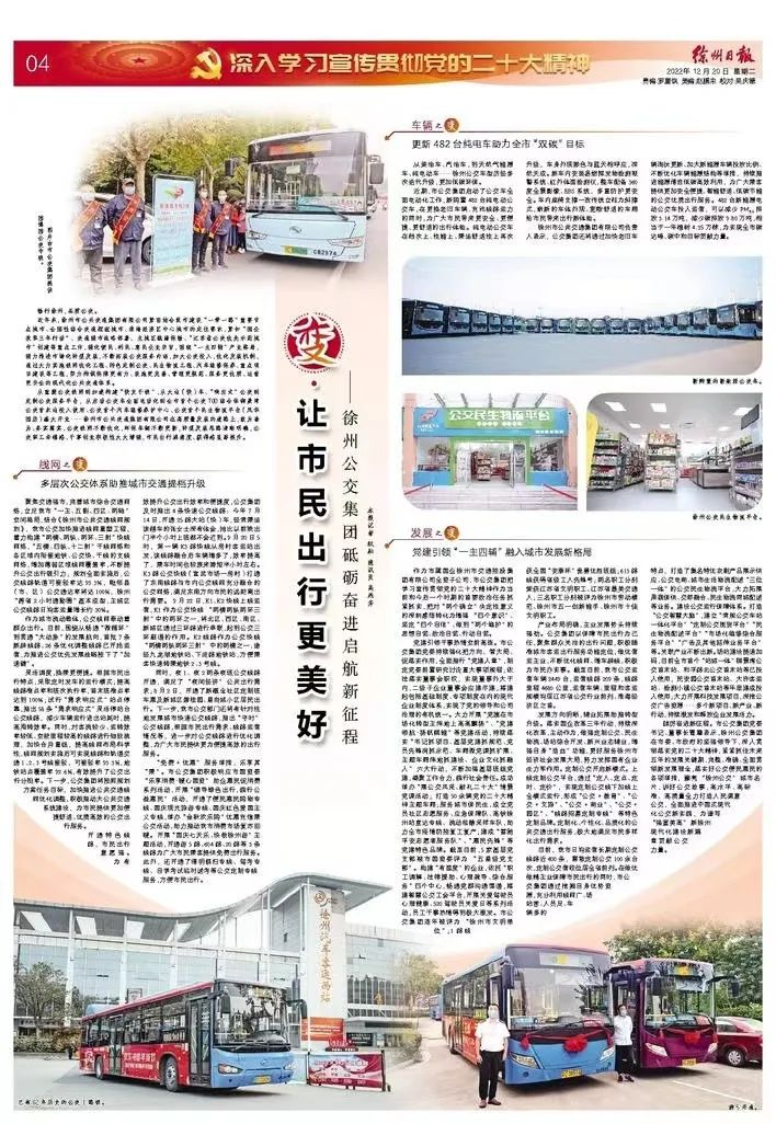 12月20日《徐州日?qǐng)?bào)》04版刊登文章《變.讓市民出行更美好——徐州公交集團(tuán)砥礪奮進(jìn)啟航新征程》