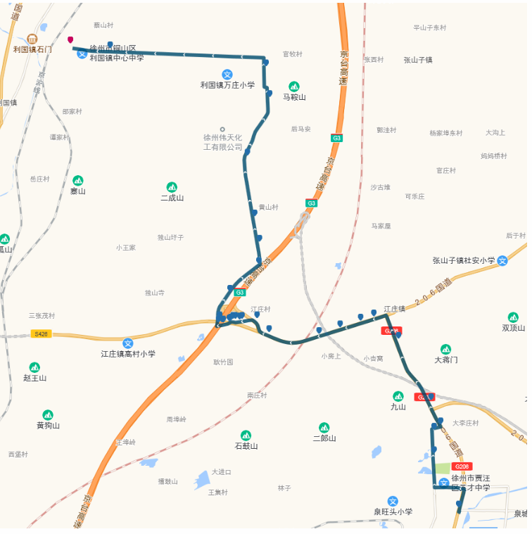 起訖點及服務(wù)時間:賈汪客運站(7:00-16:30)-利國(8:30-18:00)