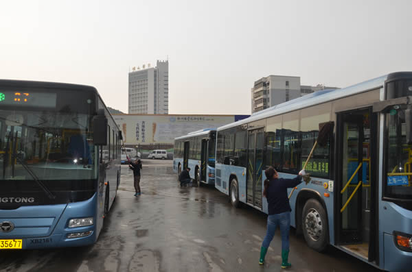 特別是雨后,所有管理人員、調(diào)度員、駕乘人員齊上陣,利用休停和晚收車后的時間,加班加點對2300多臺營運車輛和各公交首末站、停車場、調(diào)度室等環(huán)境衛(wèi)生進行了徹底的衛(wèi)生大掃除,清理衛(wèi)生死角。由機關職能部室和服務督導隊,以及各營運公司組成檢查組,每天都要在線路開展衛(wèi)生專項檢查。針對檢查中發(fā)現(xiàn)的問題限期整改,責任到人。徐州公交在每臺車的前擋風玻璃處放置了創(chuàng)衛(wèi)標語,在公交首末站懸掛創(chuàng)衛(wèi)標語37個,在700多臺公交車載電視中滾動播出創(chuàng)衛(wèi)宣傳片,制作了創(chuàng)衛(wèi)健康宣傳專版30多個,在每個調(diào)度室張貼了《中國公民健康素養(yǎng)66條》,在所有停車場、辦公區(qū)域、車廂內(nèi)張貼了禁煙標識。